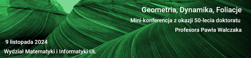Katedra Geometrii Uniwersytetu Łódzkiego oraz Oddział Łódzki PTM mają przyjemność zaprosić na konferencję naukową „Geometria, Dynamika, Foliacje” organizowaną z okazji 50-lecia doktoratu Profesora Pawła Walczaka.